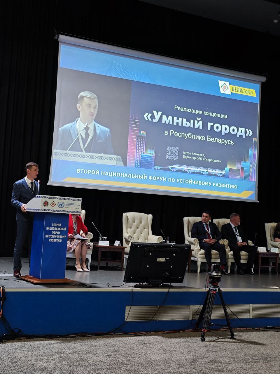 В рамках панельной дискуссии 5 «Устойчивые города и регионы будущего. Локализация ЦУР» Антон Алексеев выступил с докладом на тему «Реализация концепции «умный город» в Республике Беларусь».