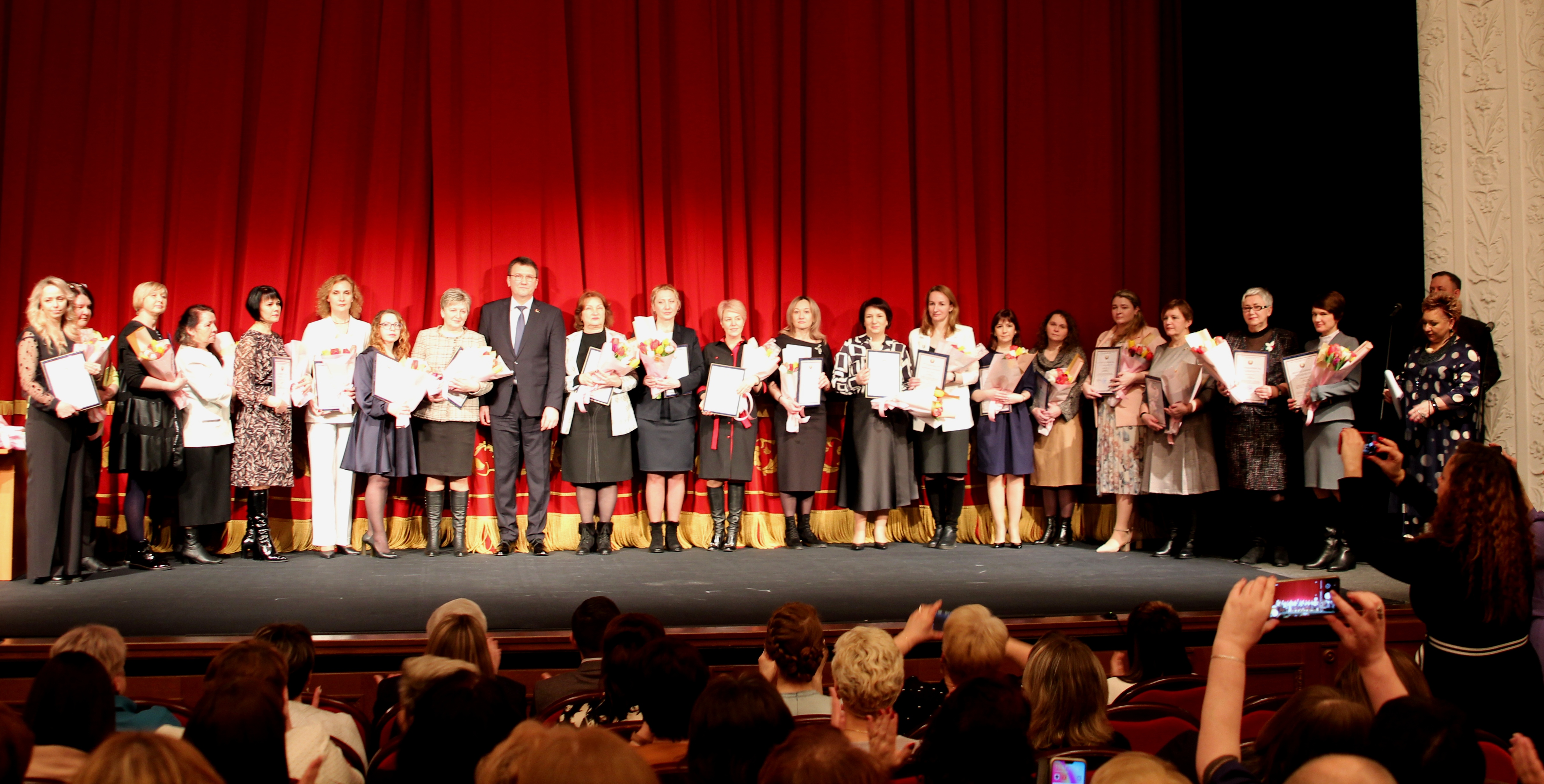 Местом встречи в этом году стал Белорусский государственный академический театр юного зрителя. Более 250 представительниц трудовых коллективов организаций связи приняли участие в торжественном приеме.
